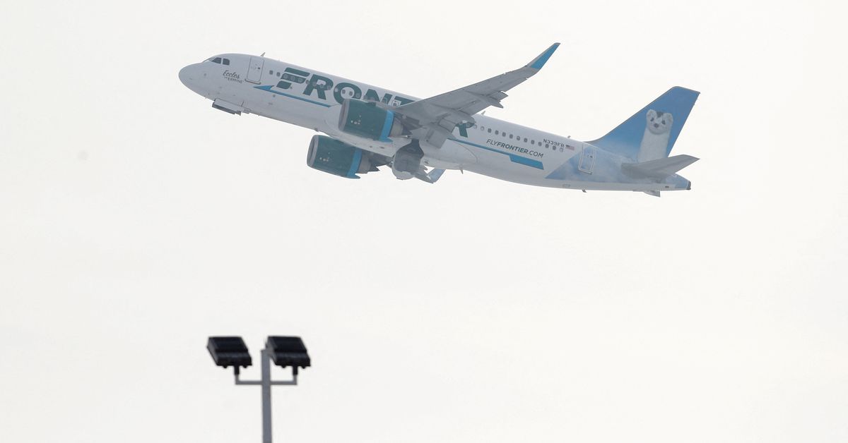 A Frontier Airlines Airbus A320neo plane departed from O'Hare International Airport in Chicago, Illinois, U.S. November 30, 2018. REUTERS/Kamil Krzaczynski/File Photo