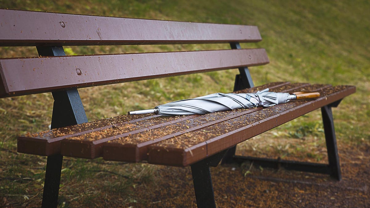 Finally, if you’re the modern type who loves solving simple problems with incredibly delicate and advanced technology, you could attach a Tile or AirTag to your umbrella and set a separation alert to warn you if you leave it behind. Alternatively, when you put your umbrella down somewhere, set up a reminder on your phone’s calendar app for when you estimate you’ll be leaving. If you’re not ready to go when it activates, just snooze it until you are. Annoying, but effective.